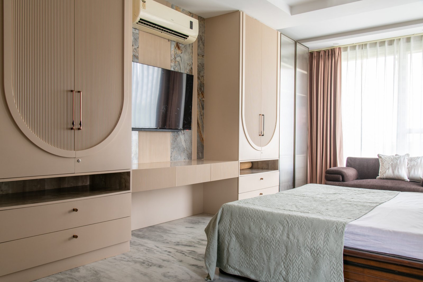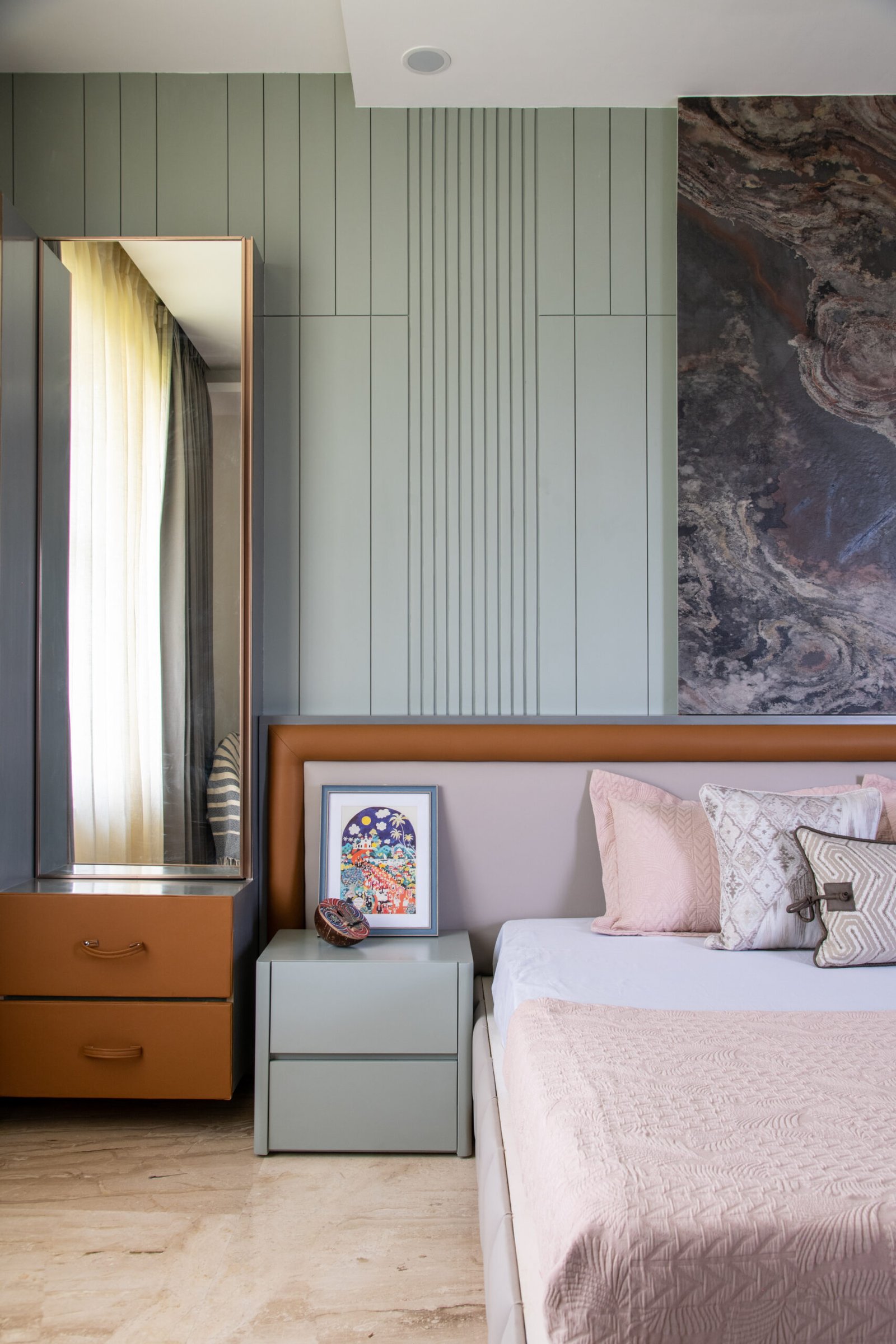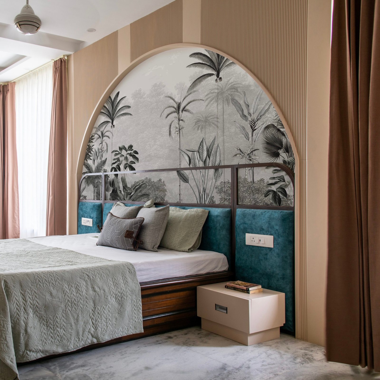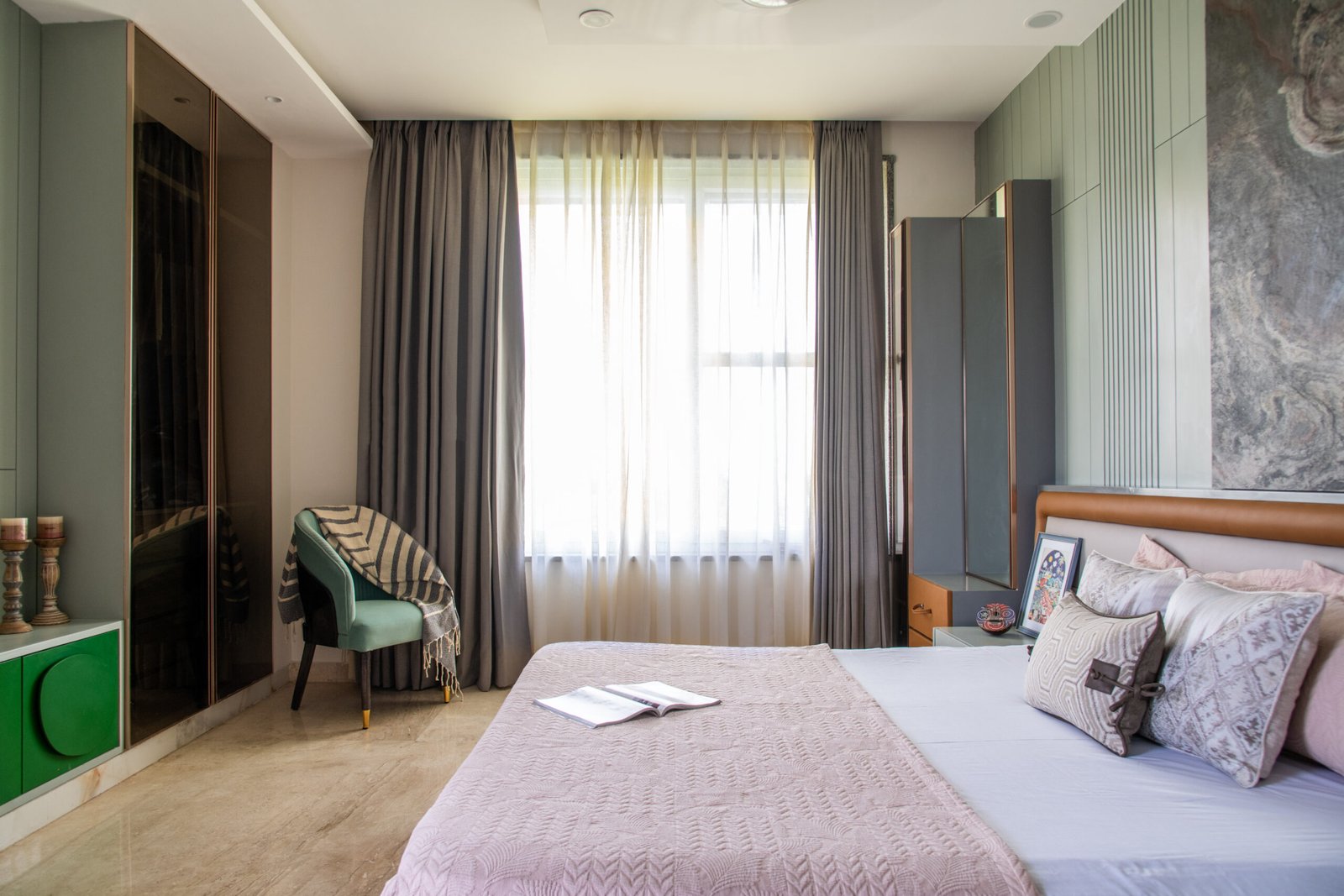 We began with the site itself—the treetop views and forest rhythm inspired the home’s connection to nature. Large openings and expansive windows were designed to frame greenery, while natural light was woven into every corner. The master bedroom extended this narrative with soothing green tones and an open, airy plan. Interiors were styled with restraint: sleek finishes provided a modern foundation, while heirloom furniture, vintage artworks, and curated accessories layered in heritage and warmth. Every decision balanced modernity with memory, minimalism with richness, creating a home that is as soulful as it is sophisticated.