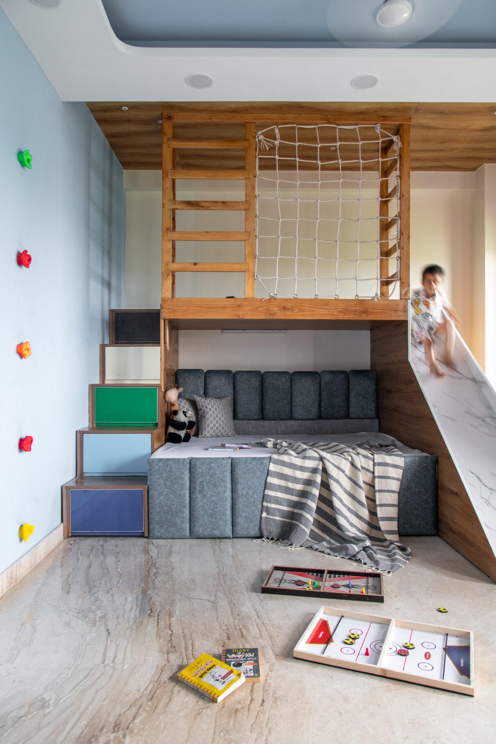 Amidst the bustle of Faridabad, this residence opens into a sanctuary of calm overlooking a forest reservoir. Designed with a rare balance of openness and intimacy, the home embraces natural light, treetop views, and shades of green to create a sense of tranquility. The interiors blend minimal, clean finishes with handcrafted heirlooms and vintage art—an aesthetic that honors tradition while welcoming the future. More than a place to live, this house is a reflection of richness in spirit, a home that celebrates balance, belonging, and timeless living.